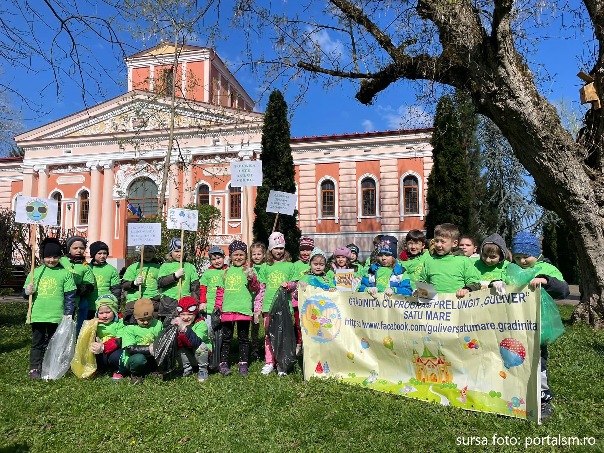 Pentru a curăța orașul, copiii de la Grădinița Guliver din municipiul Satu Mare s-au alăturat campaniei naționale de ecologizare, conștientizare, colectare și reciclare a deșeurilor abandonate, “Curățăm România!”, campanie care este derulată sub sloganul sugestiv: “Vrem o țară fără deșeuri abandonate!”