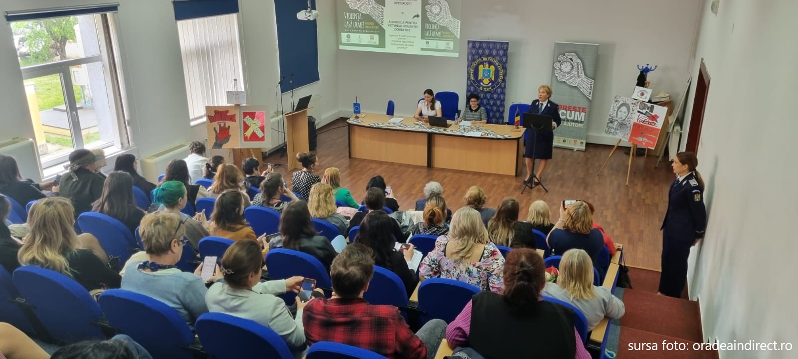 Astfel, la Biblioteca Judeţeană „Gheorghe Şincai” din Oradea, polițiștii de prevenire bihoreni au organizat o dezbatere privind violenţa domestică, la care au fost prezente peste 100 de persoane, elevi, studenți, profesori, directori ai unor instituții de învățământ, asistenți sociali, reprezentanți ai unor fundații și ONG – uri, precum și ai unor instituții publice locale.